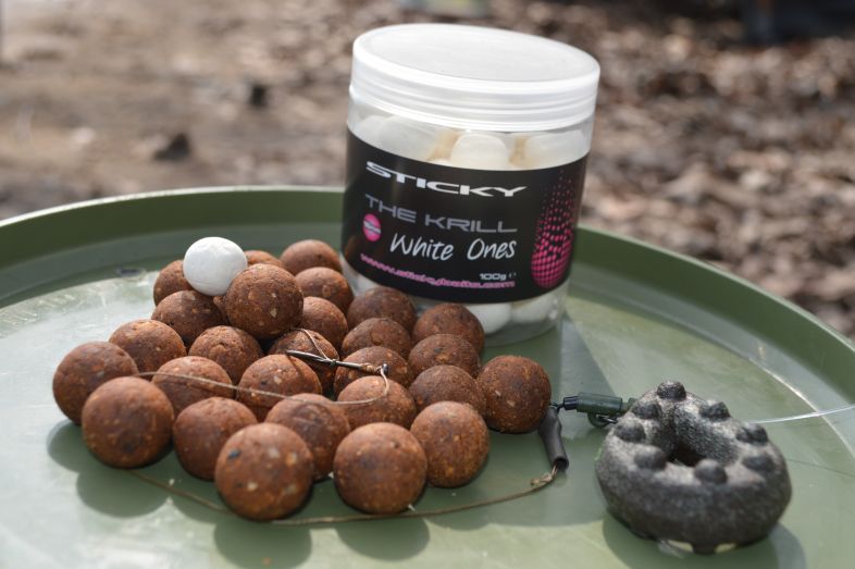 Na jednym kiju zakładam tonącą kulkę The krill oraz białego 16mm pop-upa z nowej serii - The Krill White Ones, na drugim zaś standardowy „bałwan” z dwuch tonących 20mm kulek Bloodworma (ochotka).