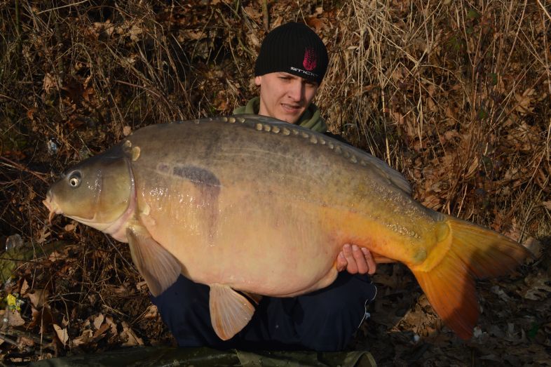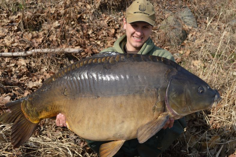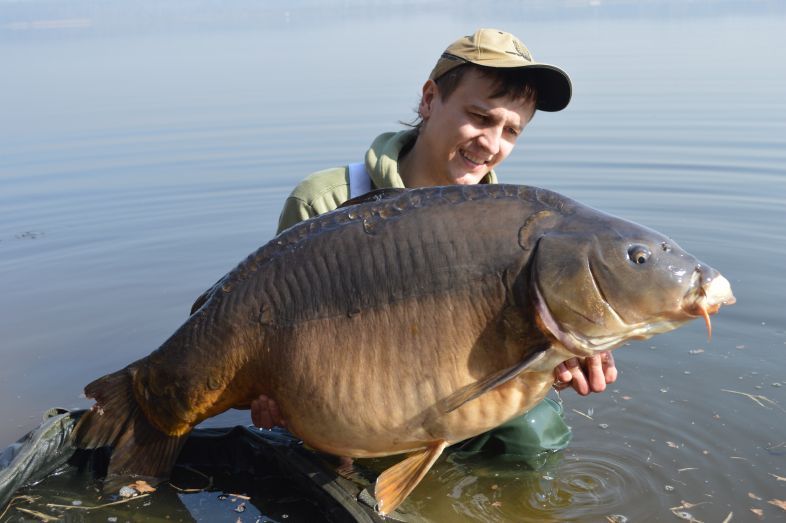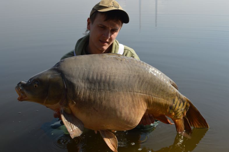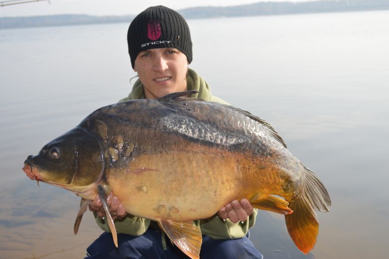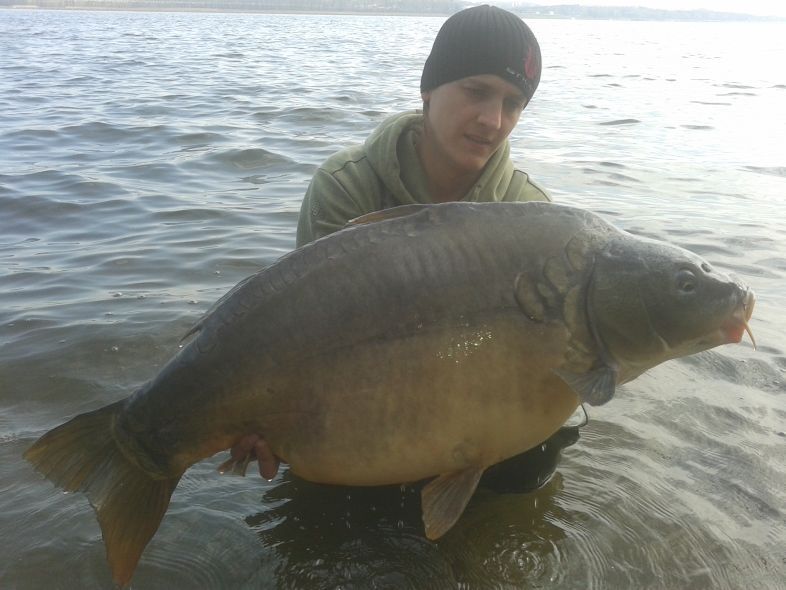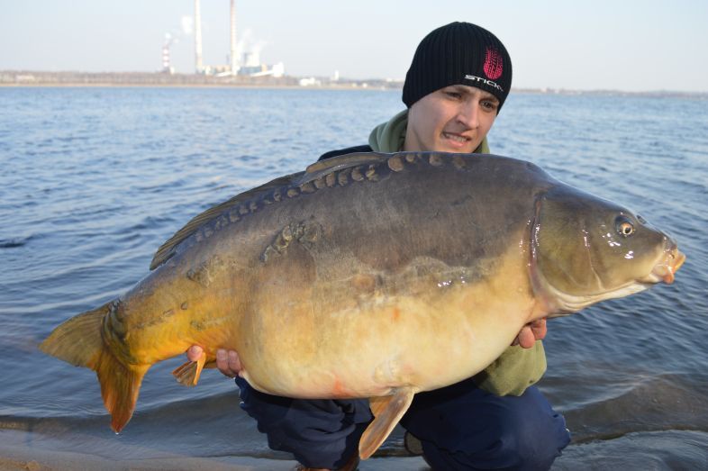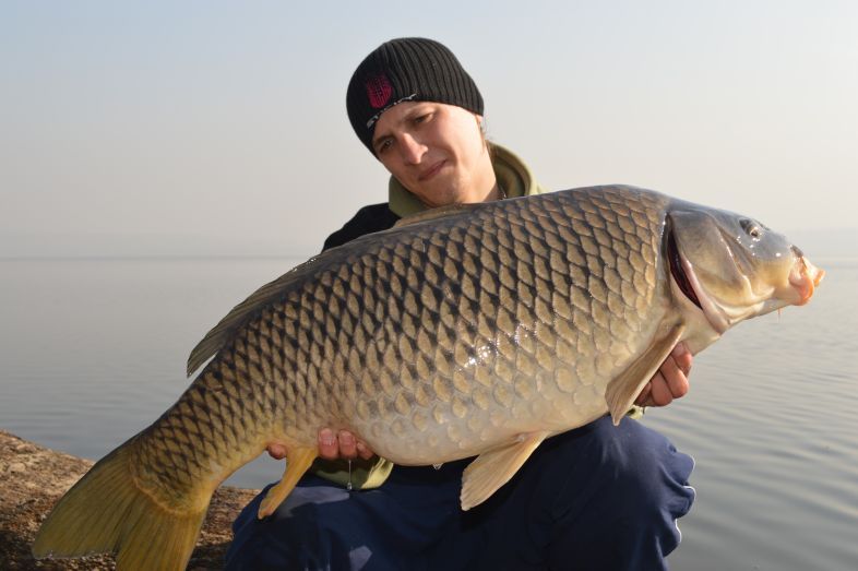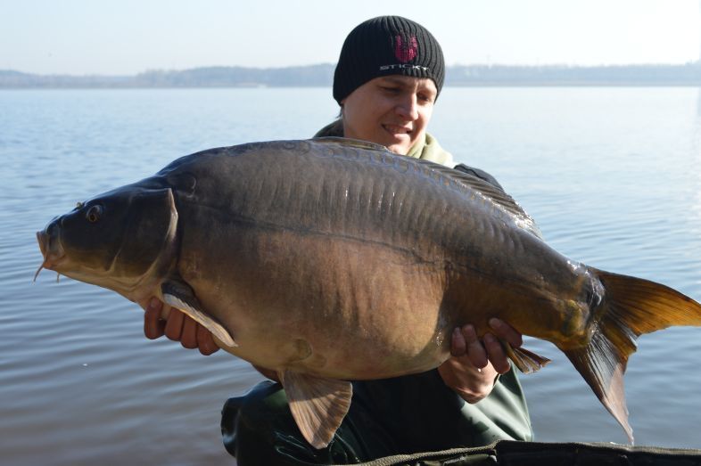 Po sesji zdjęciowej rybka wraca do wody,a ja wywożę zestaw i czekam na kolejne branie. Jak się okazało nie trwało to długo, bo około godziny 10 kolejne branie na zestaw z Krillem. Od początku czuję, że to również spora ryba . W końcu pod brzegiem dostrzegam, że to kolejny ładny lustrzeń. Jeszcze kilka odjazdów i wprowadzam rybę do podbieraka. Następnie ważenie. No i jest piękny 17,3 kg lustrzeń.